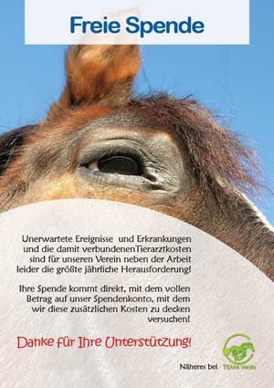 Unerwartete Ereignisseund Erkrankungen und die damit verbundenen Tierarztkosten sind für unseren Verein neben der Arbeit leider die größte jährliche Herausforderung!
